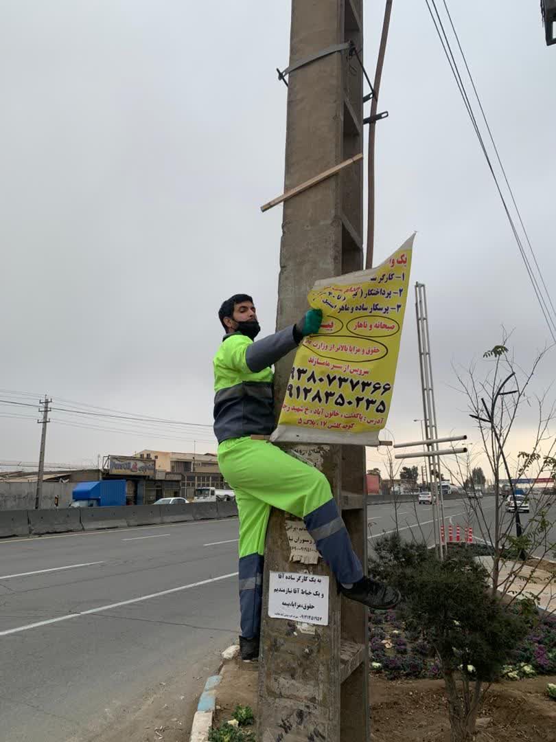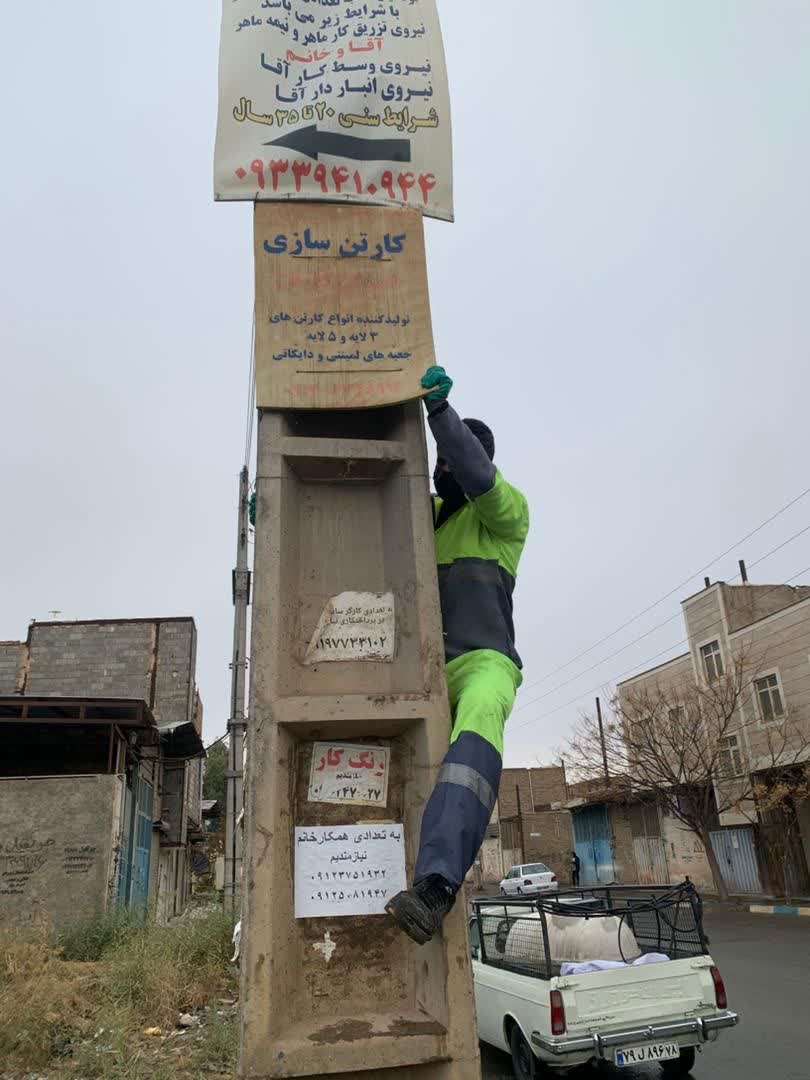 شهردار فرون آباد عنوان کرد: در اجرای ماده ۵۵ قانون شهرداریها و با هدف حفظ زیبایی بصری و ساماندهی منظر شهری تبلیغات نصبشده روی تیرهای برق، درختان و سایر نقاط غیرمجاز با هدف پیشگیری از اخلال در سیمای شهری توسط تلاشگران حوزه خدمات شهری شهرداری جمعآوری شد.